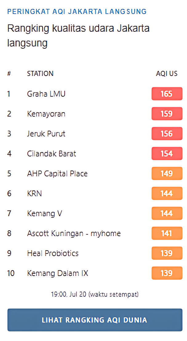 Kualitas udara di Indonesia sering menghadapi tantangan serius, terutama di kota-kota besar seperti Jakarta. Polusi udara disebabkan oleh emisi kendaraan bermotor, aktivitas industri, pembakaran sampah, dan kebakaran hutan, yang mengakibatkan tingginya kadar partikel halus dan zat berbahaya. Ini berdampak pada kesehatan masyarakat, meningkatkan risiko gangguan pernapasan dan penyakit jantung. Upaya terus dilakukan untuk mengatasi masalah ini melalui kebijakan pengendalian polusi dan program kesadaran publik.